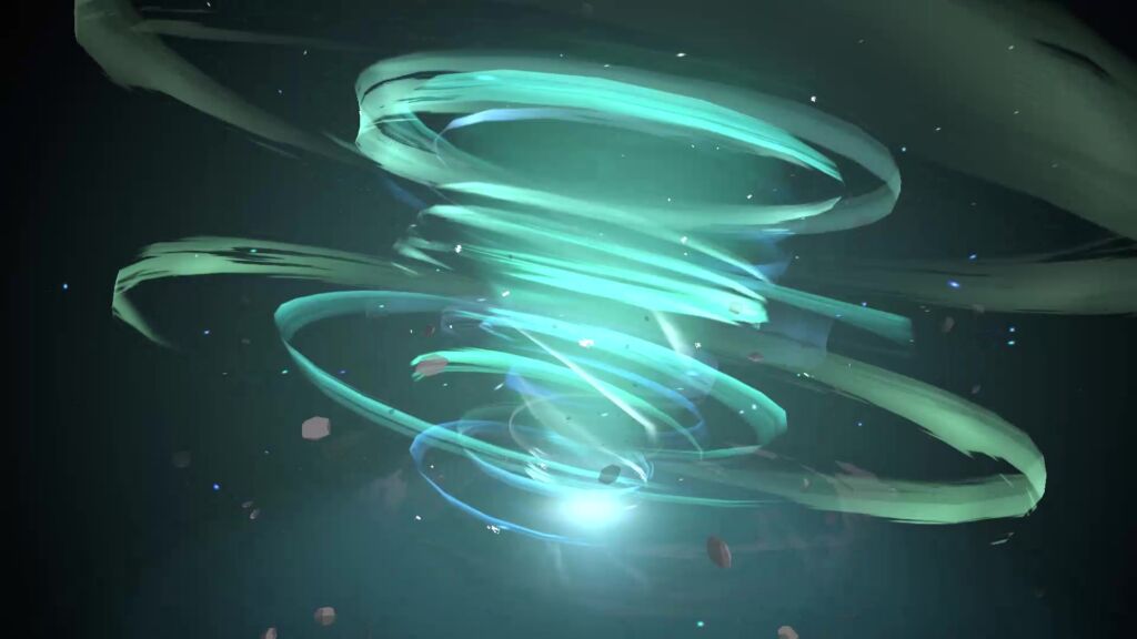 風は軽やかさや自由を象徴する属性です。風を扱ったエフェクトでは、緑や白、さらには透明感のある色合いがよく使われます。緑色は自然を感じさせ、白は空気や無限の広がりを連想させるため、風属性のエフェクトにはぴったりです。
