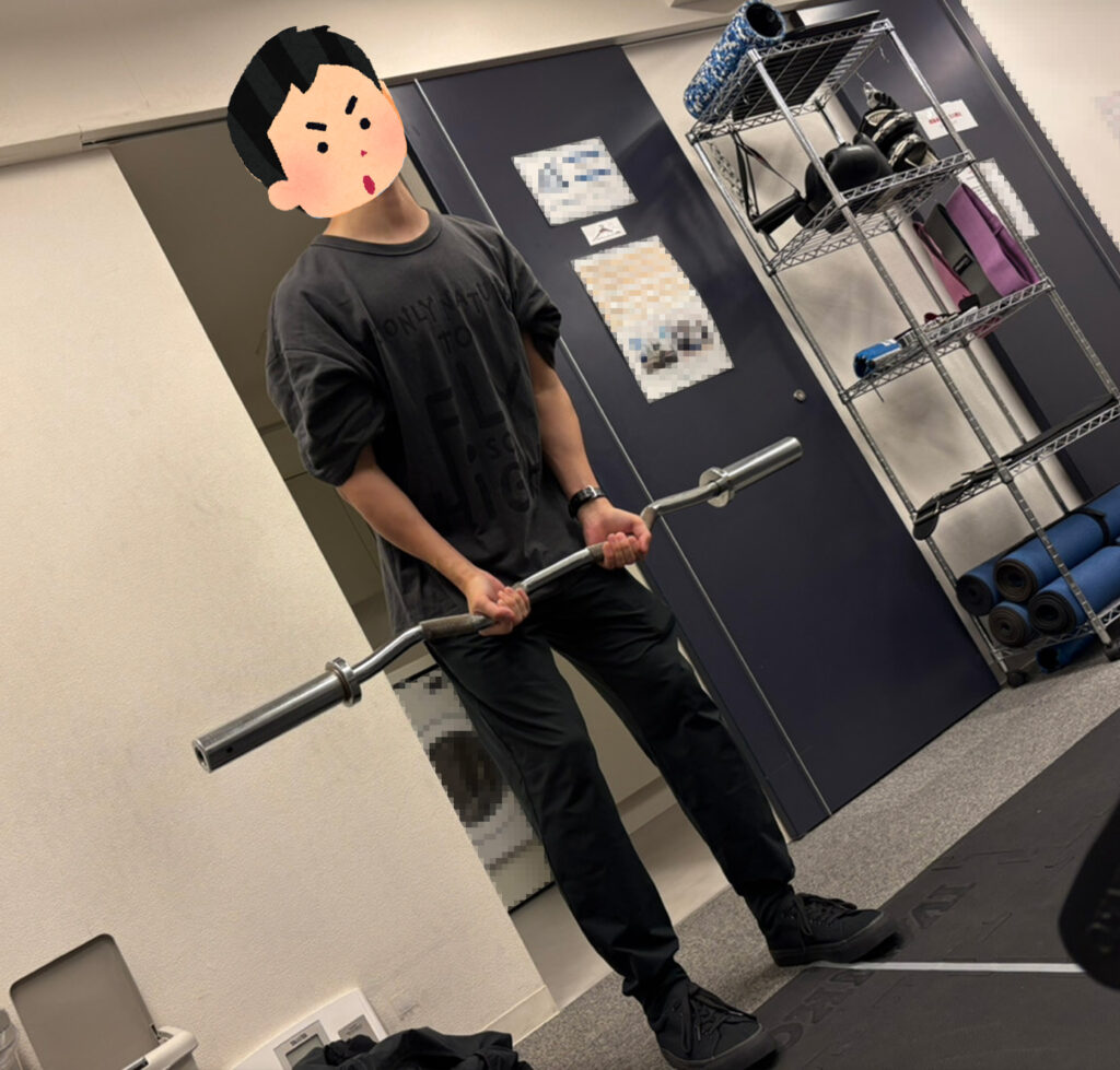 最初は軽めのバーでフォームを確認し、慣れてきたところで少しずつ重量をアップ。
