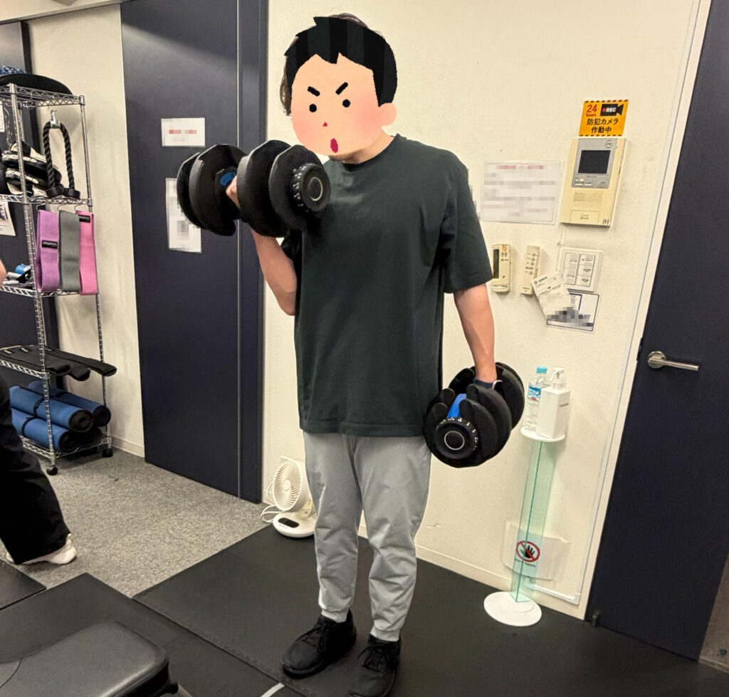 最初は軽めの重さでフォームを確認しながらゆっくり10回。