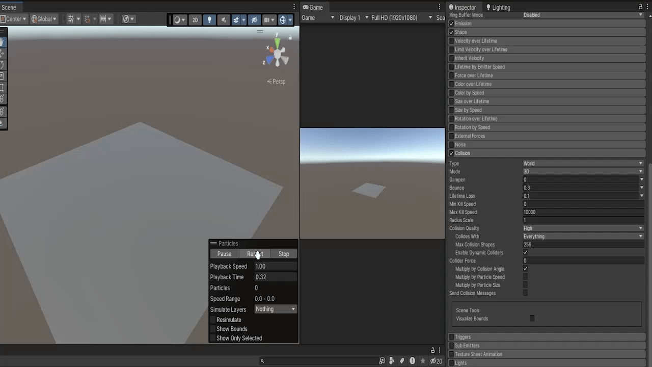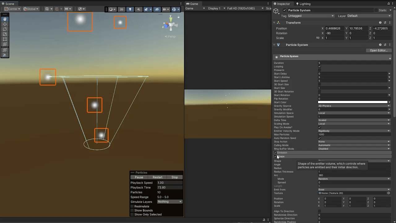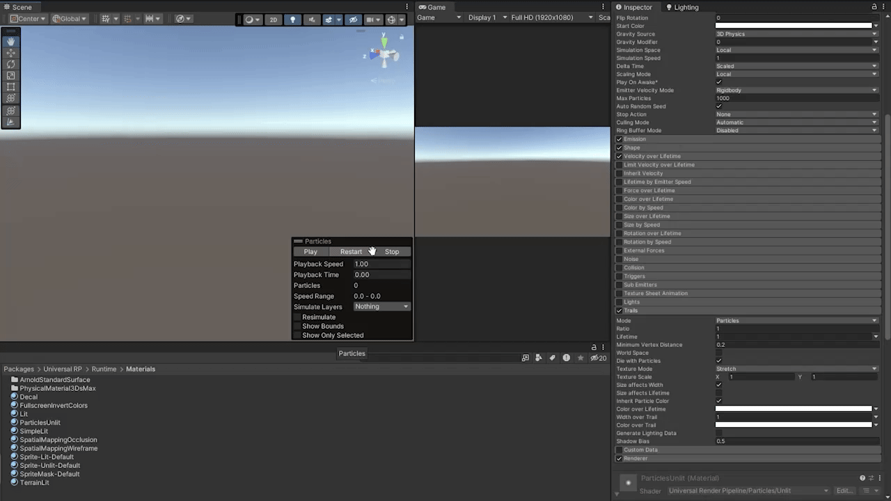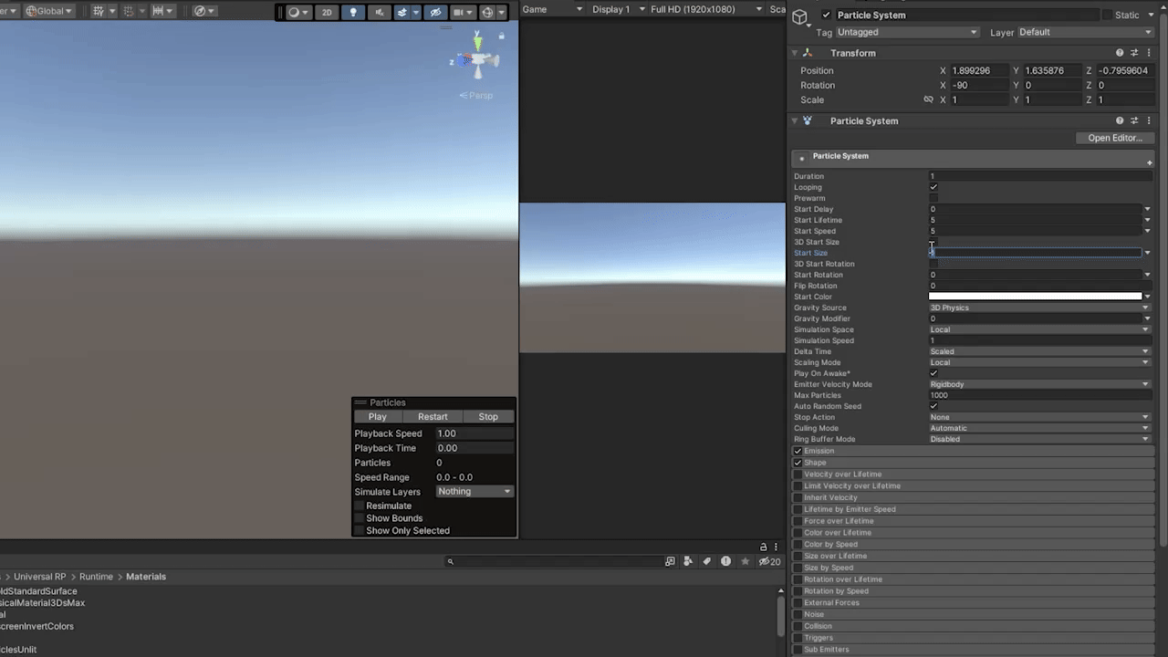 初期設定は1000に設定されています。発生している数はScene ViewのParticlesタブで確認することができます。