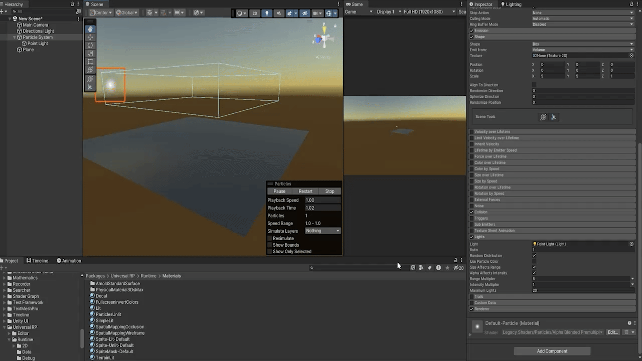 - パーティクルが発光し、周囲のライティングに影響を与える。