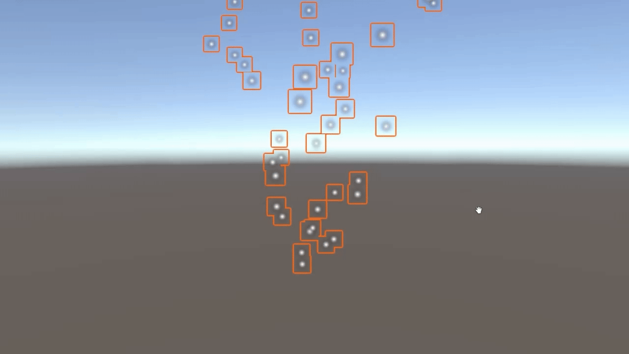 Particle System(Shuriken)は、Unityの基本機能の1つで、小さなパーティクル(粒子)を大量に発生させ、動かすことでリアルなエフェクトを表現する仕組みです。パーティクルを時間経過とともに色やサイズを変化させたりすることで視覚効果を表現することができます。また物理演算を適用することで風や重力の影響を受けることもできます。