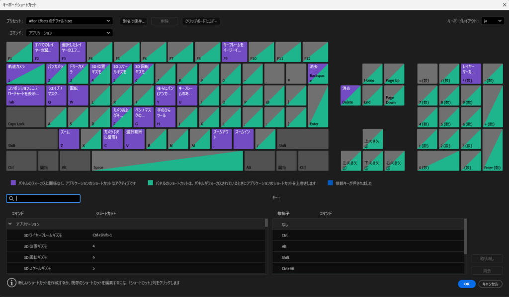 AfterEffects内の設定でも自由にショートカットキーを登録することが可能