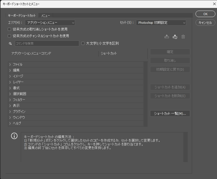 Photoshop内の設定でも自由にショートカットキーを登録することが可能