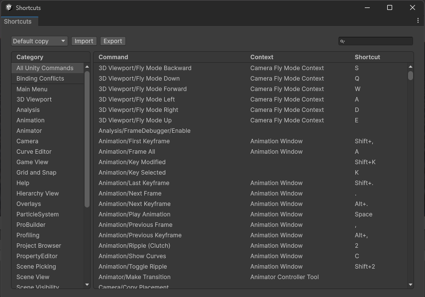Unity内の設定でも自由にショートカットキーを登録することが可能