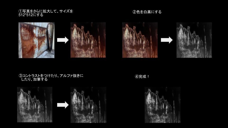 錆の部分をもとに、このようなテクスチャを作成しました!