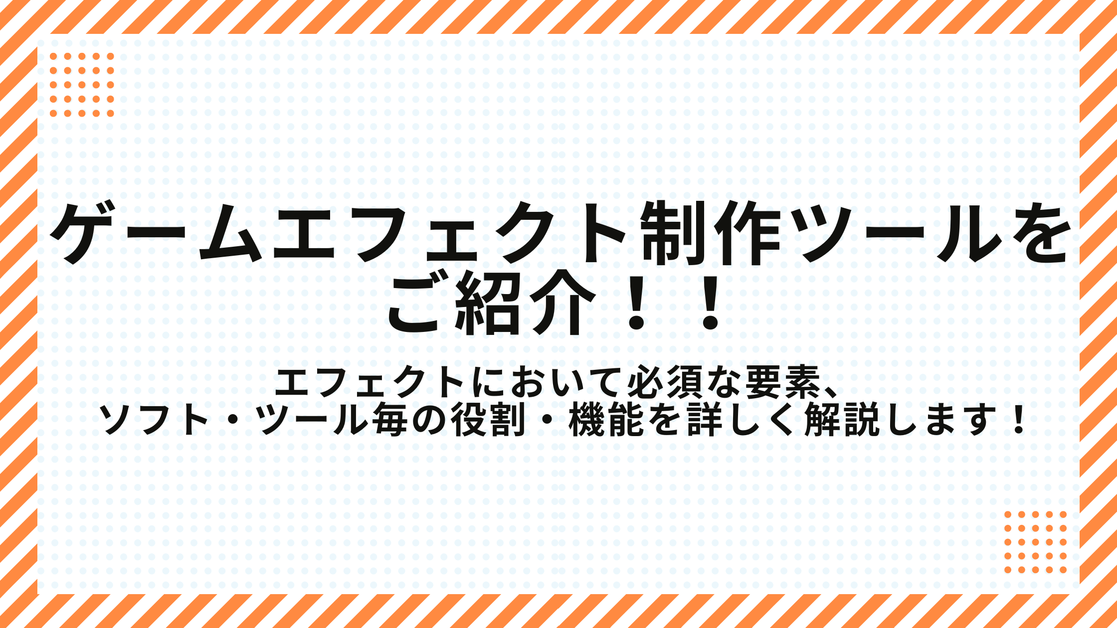 今回はゲームエフェクトの種類、必須な要素、制作におけるソフト・ツールについてご紹介しました!