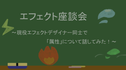 皆さんこんにちは!! LUNCH TIME広報部です! 本記事のブログテーマは「エフェクト座談会」ということで、弊社所属の現役エフェクトデザイナーに「エフェクトと属性」 について自由に話していただきました。  というのも、大体のファンタジーゲームでは、四大元素に代表される火や水などの自然物が持つパワーを操れるキャラクターや作品独自の属性を持ったキャラクターが登場します。 それらのキャラクターが繰り出す技のエフェクトを制作するのもエフェクトデザイナーの仕事です。  ですので、本記事では、現役エフェクトデザイナーの方にお越しいただき、エフェクトを制作する際、属性らしさを出すために気を付けていることや好きなところ 等をカジュアルにお話しいただきましたので、お楽しみいただけますと幸いです。  それでは、どうぞ!!!!