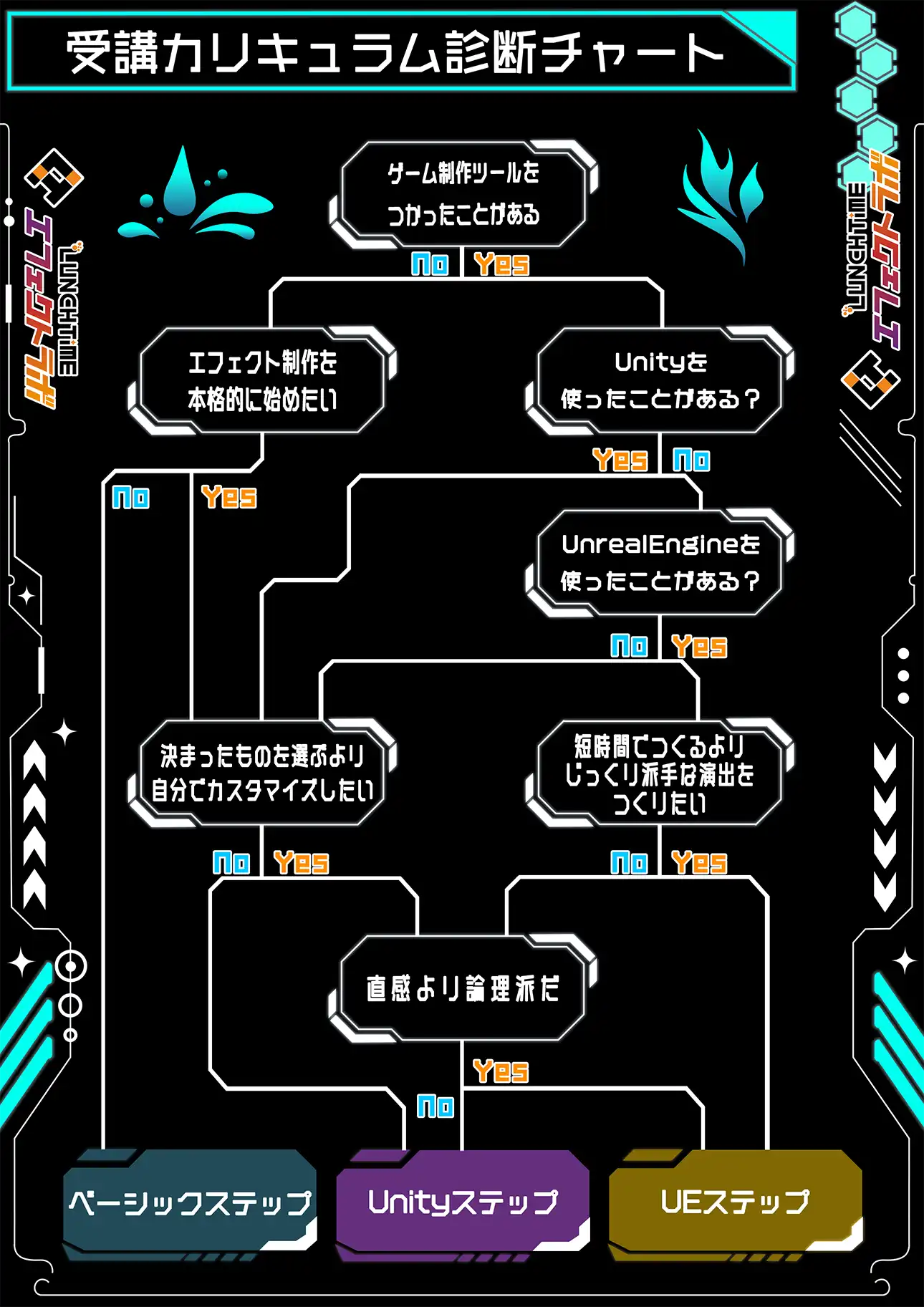 「Lunch Time エフェクトラボ」は、ゲームエフェクト制作を専門とする株式会社ランチタイムの知識と実績をもとに設立された、業界直結型のエフェクトデザイナー育成スクールです。