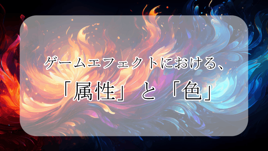ゲームにおいて「属性」とは、キャラクターやアイテム、エフェクトなどに付随する特性のことを指します。 たとえば、元素的な特性(火、水、風、土など)や、状態異常(毒、麻痺、氷結など)、またはそれに伴う特殊効果(光、闇など)が含まれます。 これらの属性は、プレイヤーに対して視覚的にわかりやすく伝えるために、エフェクトの色や形に反映されます。